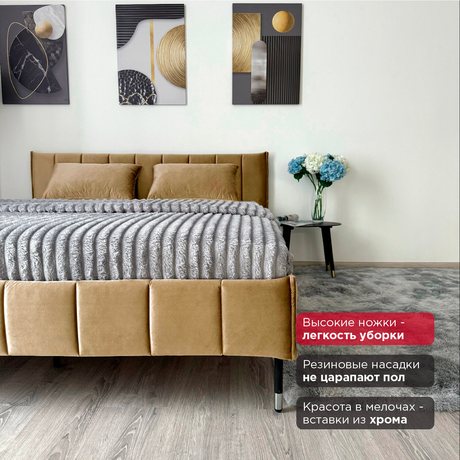 Кровать Redsofa Стелла золотой Шайн / ножки хром 160х200 с ортопедическим основанием 24 170 ₽