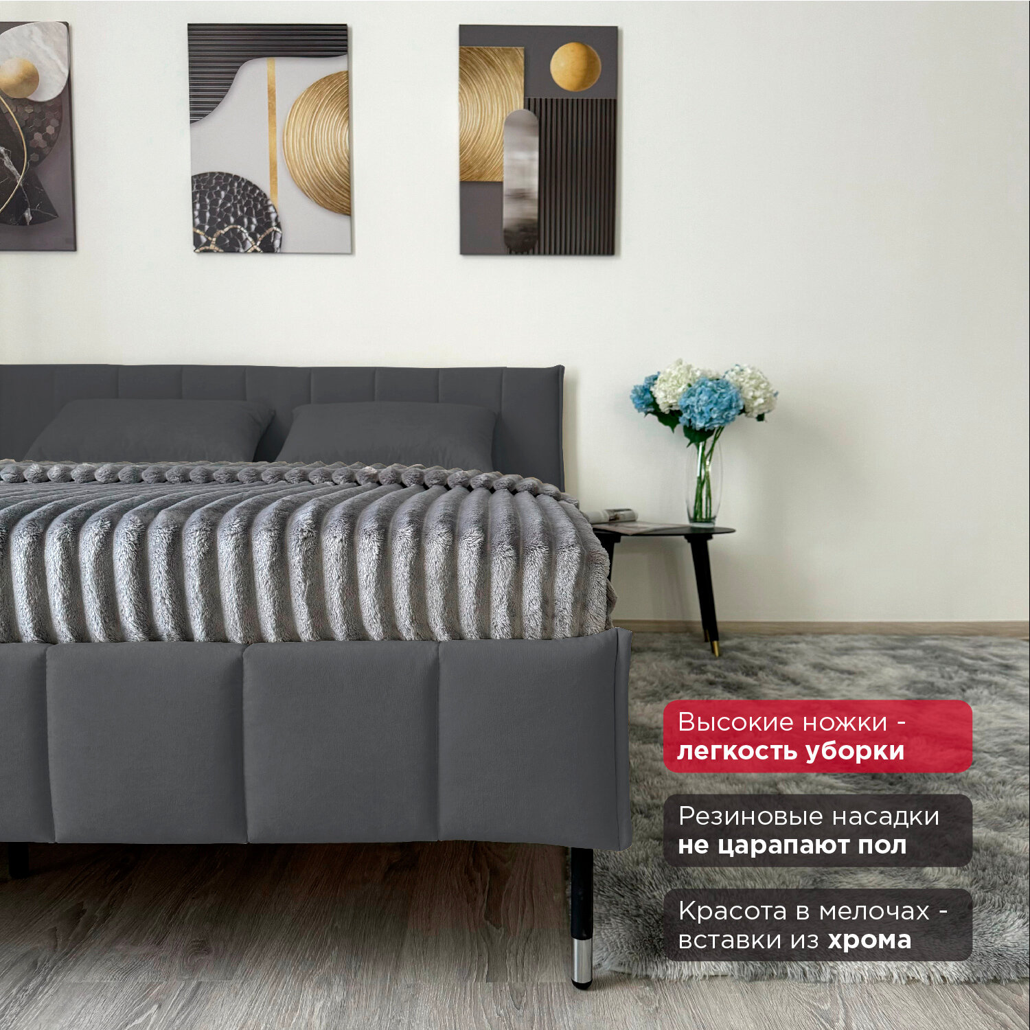 Кровать Redsofa Стелла графит Teddi / ножки хром 160х200 с ортопедическим основанием 23 751 ₽