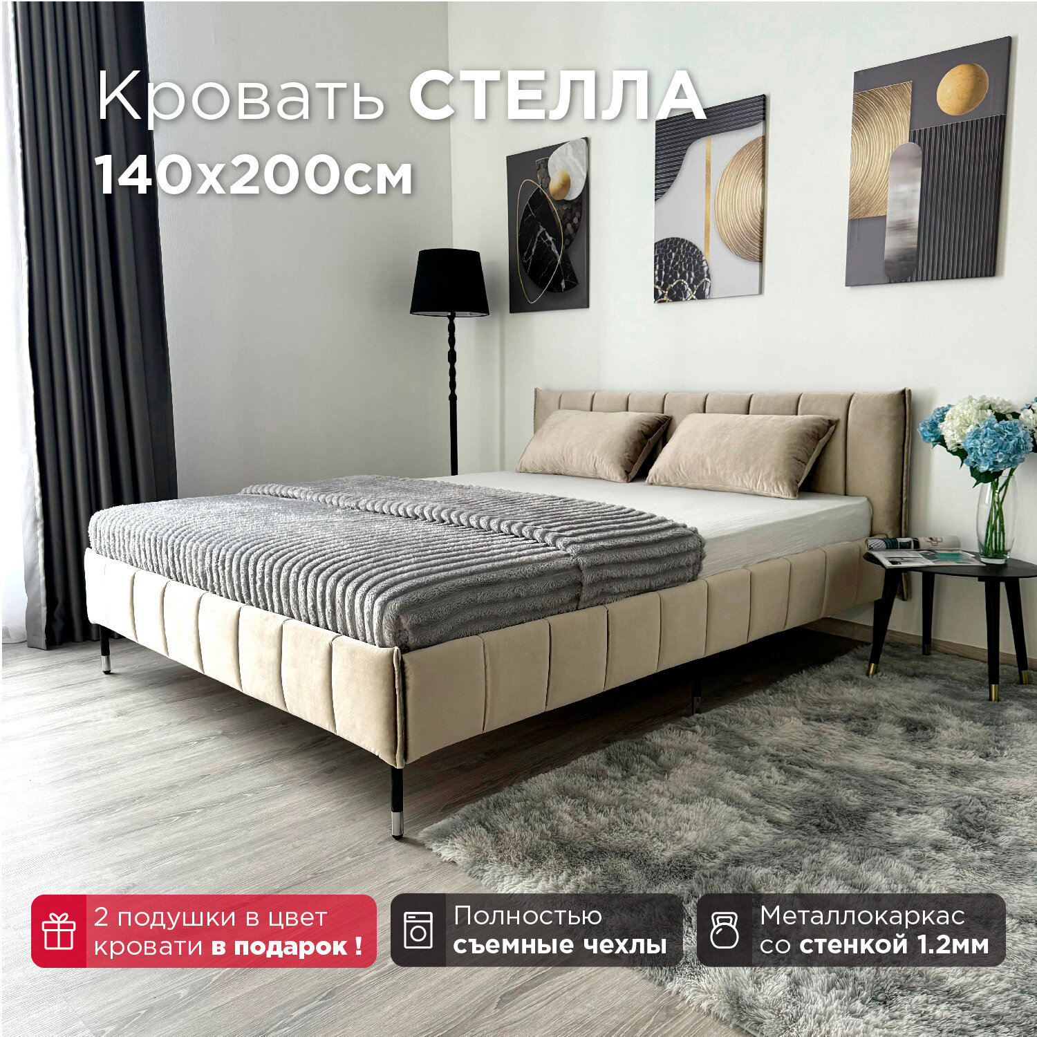 Кровать Redsofa Стелла бежевый Шайн / ножки хром 140х200 с ортопедическим основанием информация: