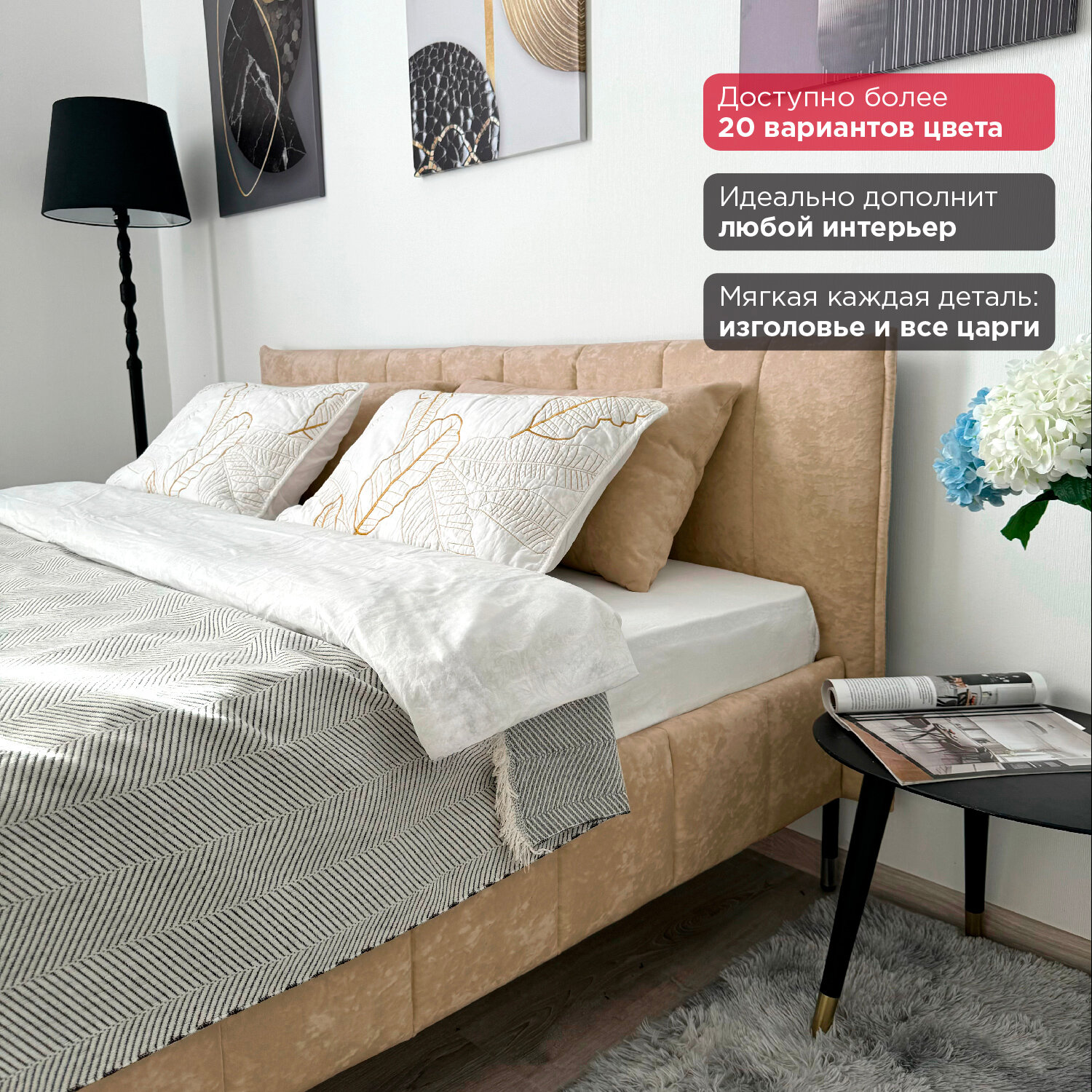 Кровать Redsofa Стелла золотой Шайн / ножки хром 140х200 с ортопедическим основанием 23 240 ₽