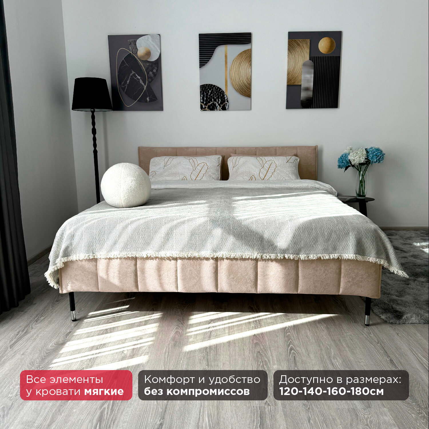 Кровать Redsofa Стелла бежевый Ocean / ножки хром 140х200 с ортопедическим основанием 25 100 ₽