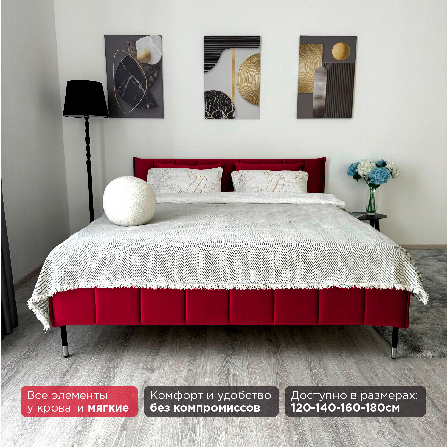 Кровать Redsofa Стелла красный Шайн / ножки хром 160х200 с ортопедическим основанием 24 170 ₽