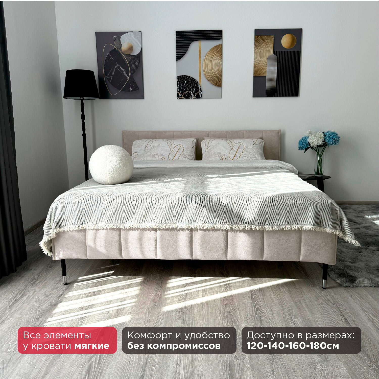 Кровать Redsofa Стелла бежевый Ocean / ножки хром 140х200 с ортопедическим основанием 25 100 ₽