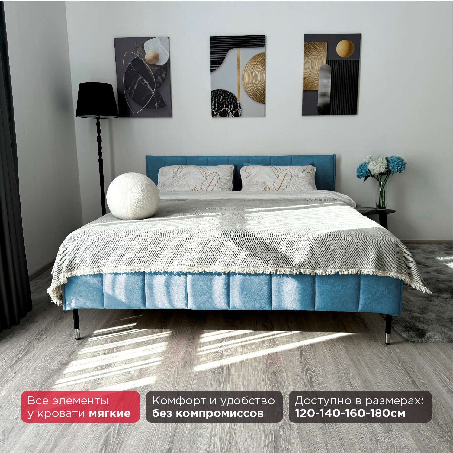 Кровать Redsofa Стелла голубой Ocean / ножки хром 160х200 с ортопедическим основанием информация: