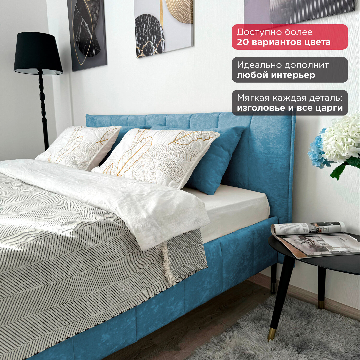 Кровать Redsofa Стелла аквамарин Ocean / ножки хром 160х200 с ортопедическим основанием 26 960 ₽