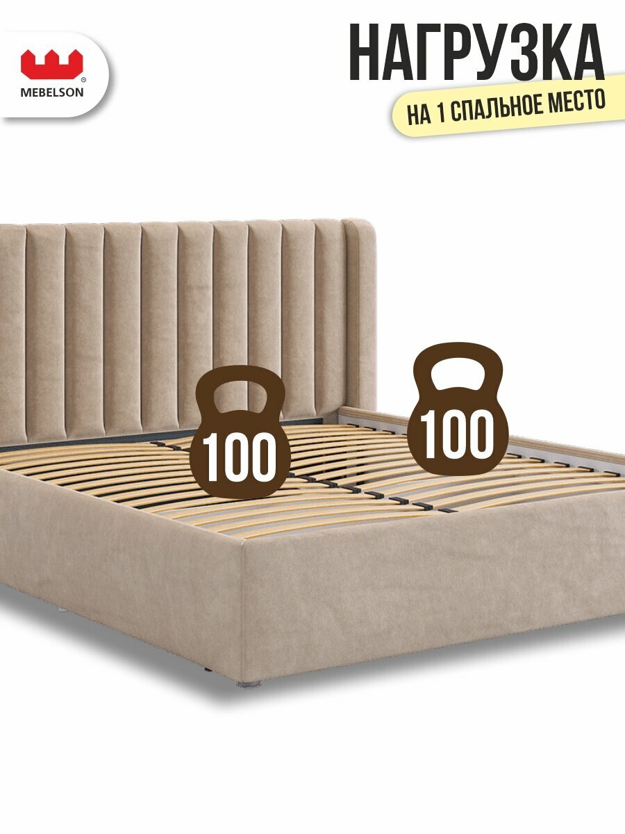 Кровать двуспальная "Ева" с основанием на опорах, 160х200 см, велюр Капучино, Mebelson информация:
