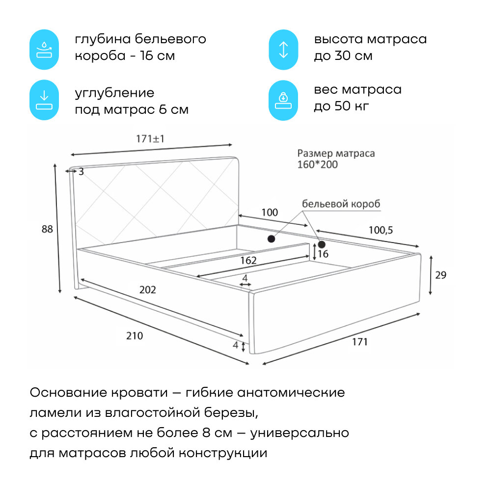 Двуспальная кровать buyson BuyRest 160х200 см, с подъемным механизмом, серо-синий, микровелюр 34 503 ₽
