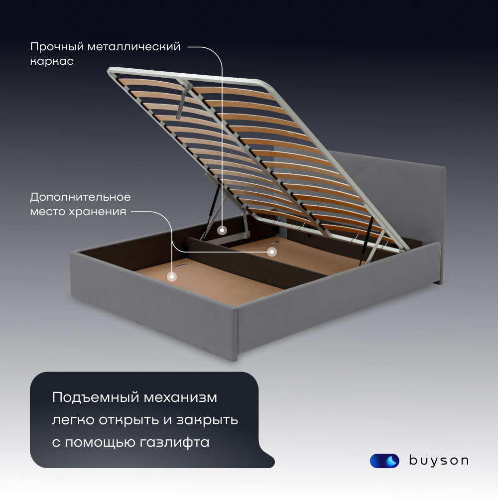 Отзывы на Двуспальная кровать buyson BuyRest 200х180 с подъемным механизмом, темно-серая микровелюр