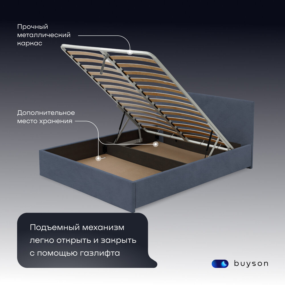 Двуспальная кровать buyson BuyRest 160х200 см, с подъемным механизмом, серо-синий, микровелюр информация: