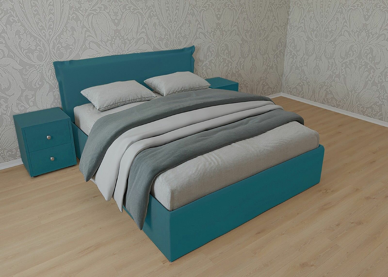 Двуспальная кровать Дели с Матрасом 180x200 основание настил ДСП велюр бирюзовый 45 500 ₽