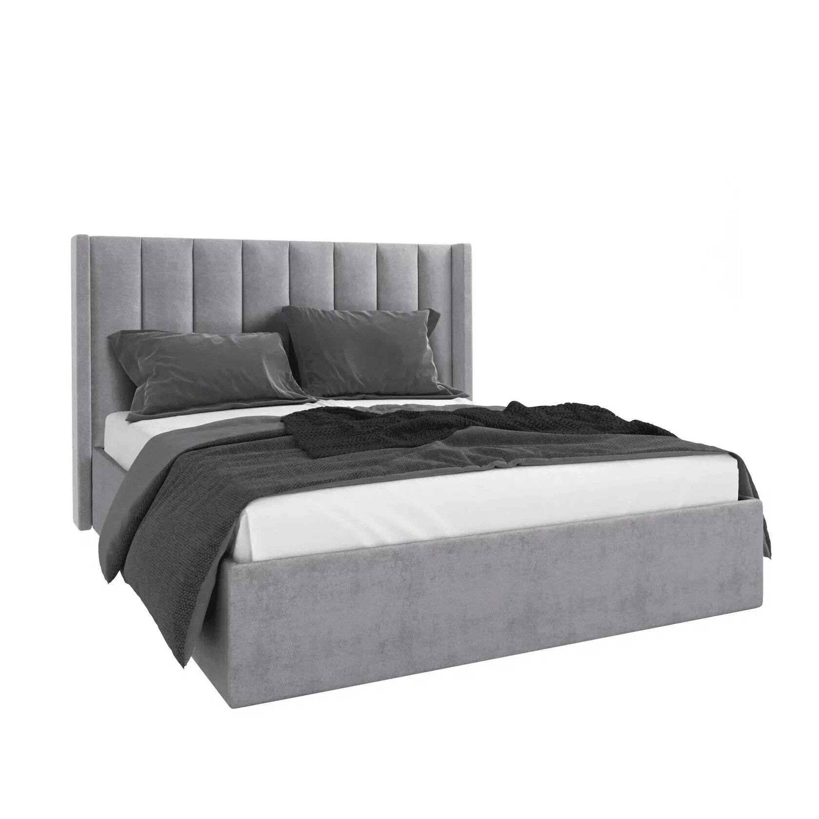 Кровать двуспальная 160х200 Selena с мягким изголовьем, подъемным механизмом, ортопедическим основанием Kelio, серый 34 489 ₽