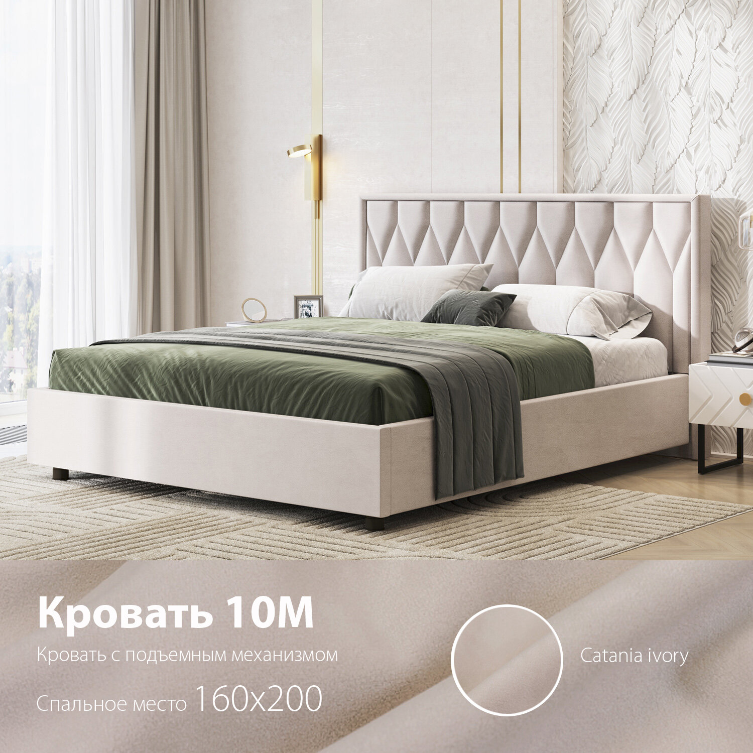 10 цен на Двуспальная кровать 10 мягкая с подъёмным механизмом 160х200 слоновая кость Кураж