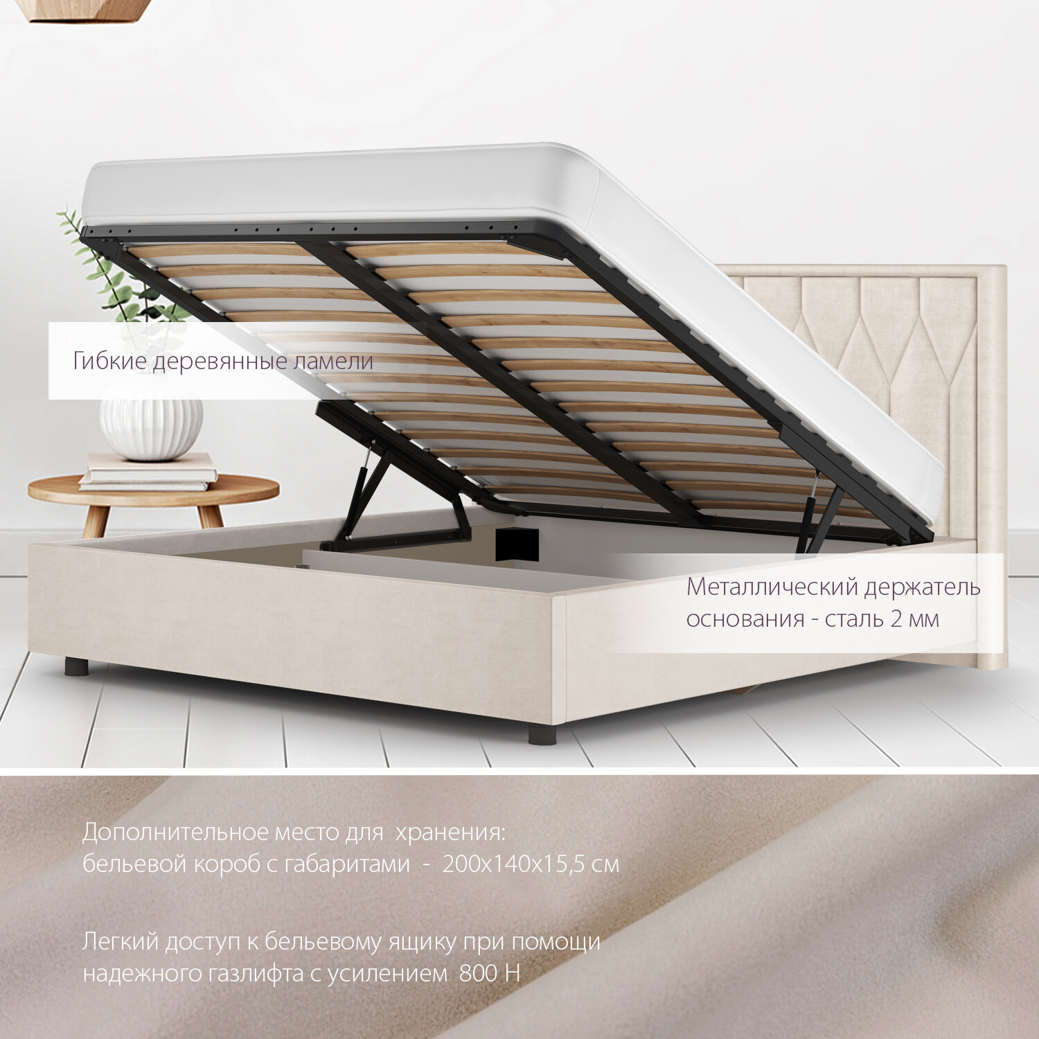 Отзывы на Двуспальная кровать 10 мягкая с подъёмным механизмом 140х200 слоновая кость Кураж
