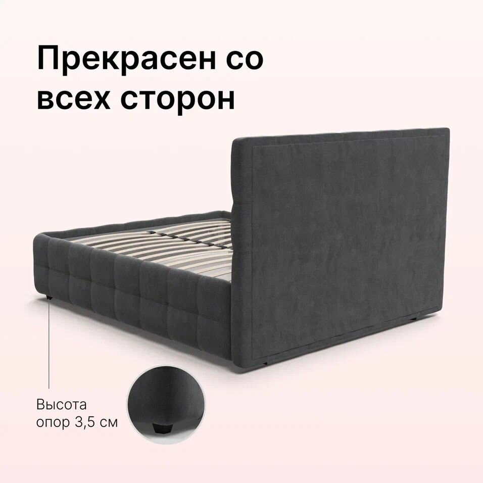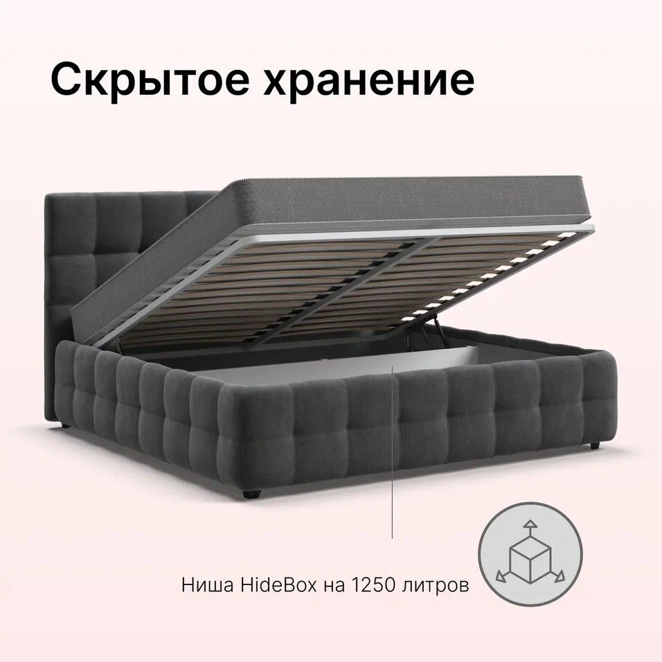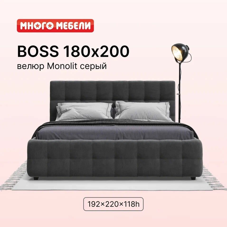 Отзывы на Двуспальная кровать Босс, с подъемным механизмом, велюр Monolit серый, спальное место 180х200 см