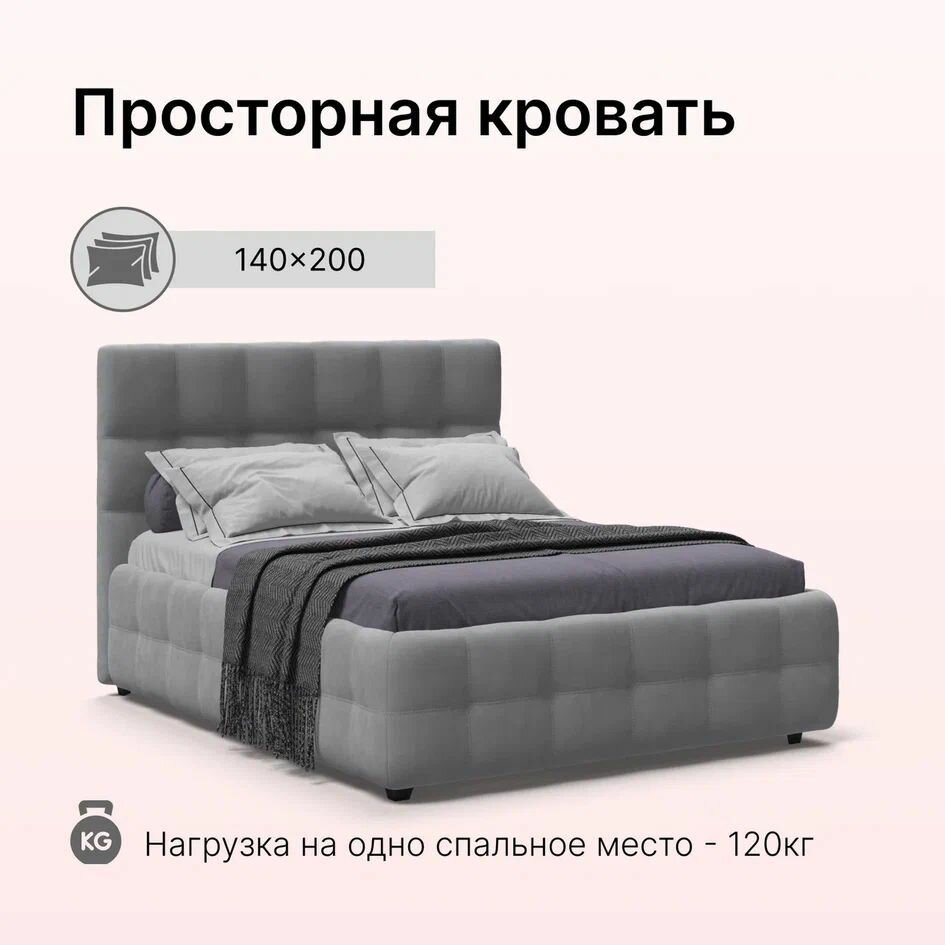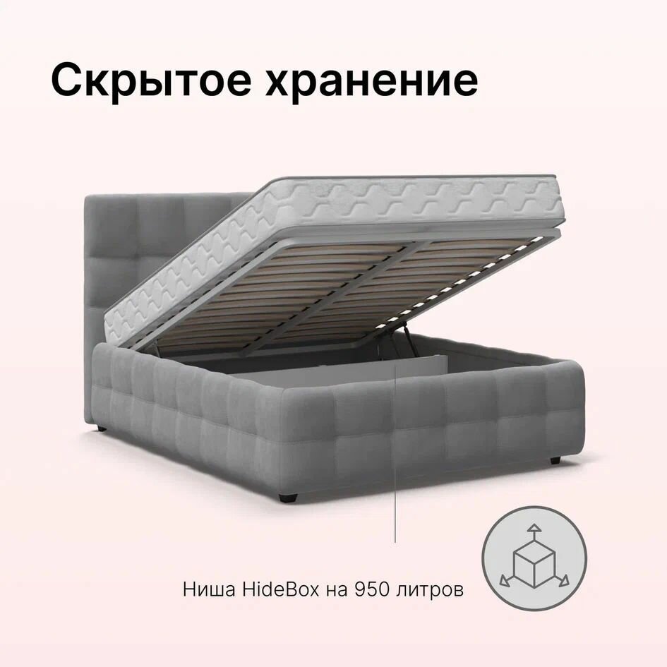 Двуспальная кровать Босс, с подъемным механизмом, велюр Monolit сталь, спальное место 140х200 см информация: