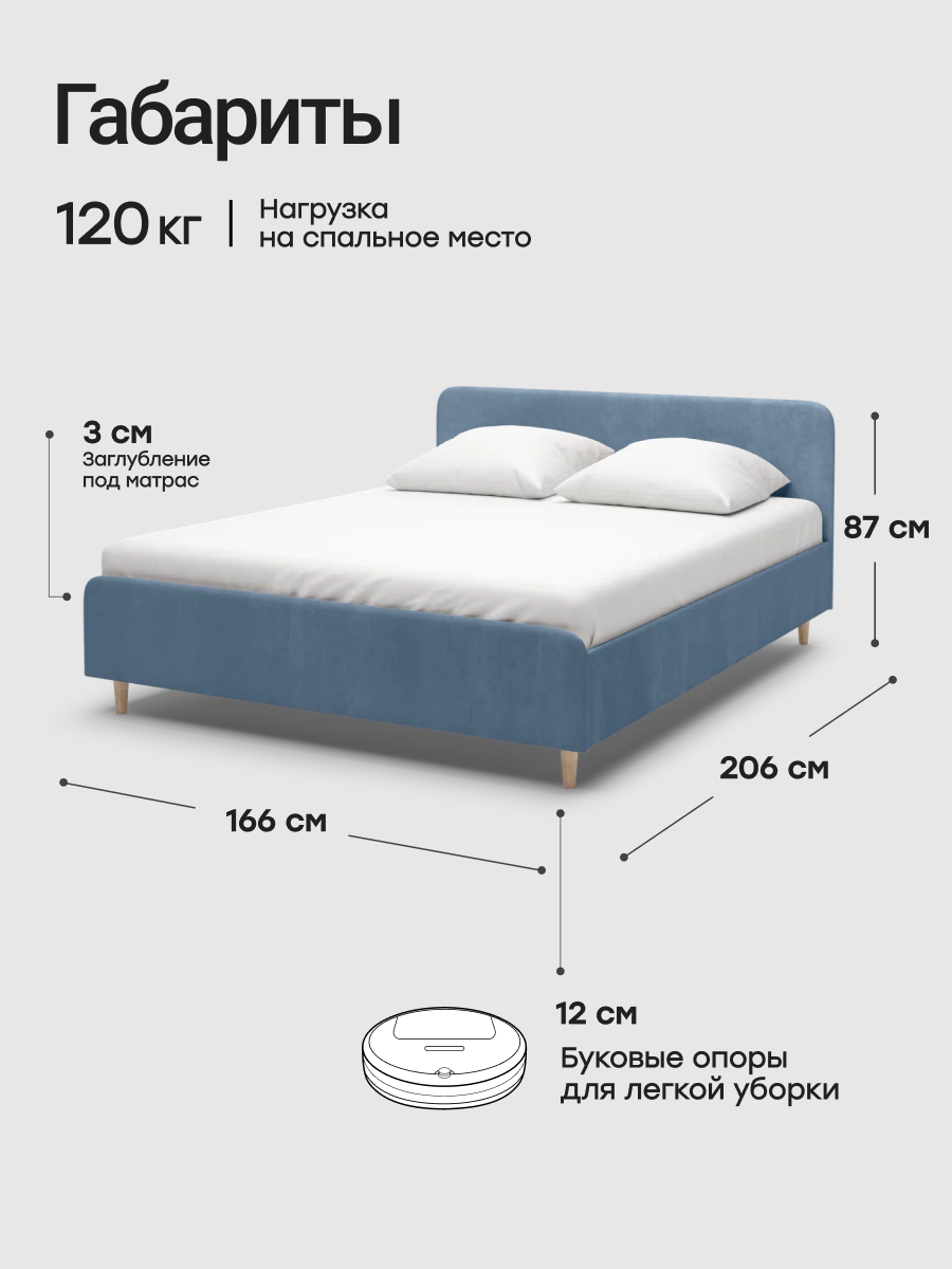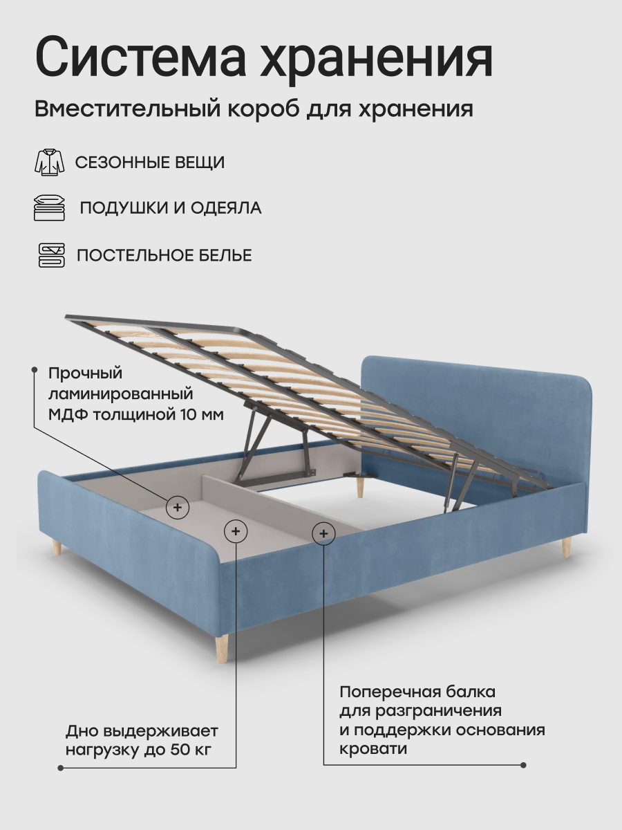 Кровать Hakkuna Matata, двуспальная, с подъемным механизмом, 160x200х75 см, голубая информация: