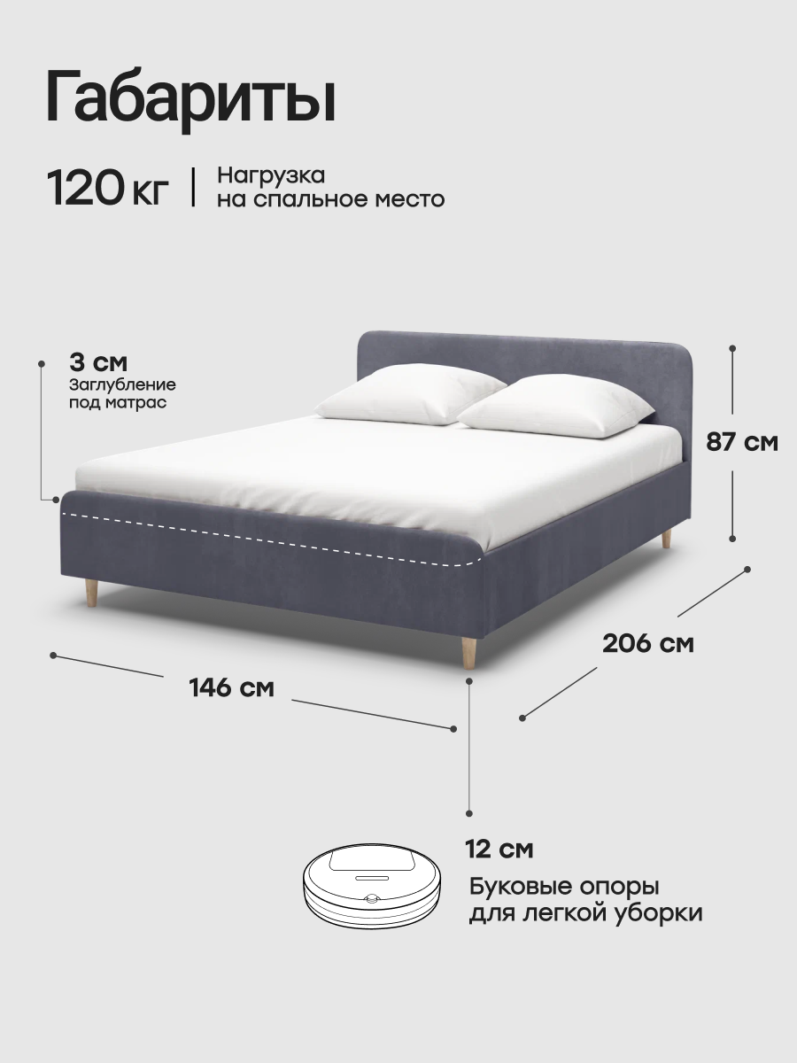 Кровать Hakkuna Matata Dacota23, с подъемным механизмом, двуспальная, 140x200х75 см, серая информация:
