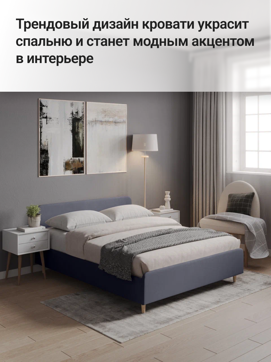Кровать Hakkuna Matata, двуспальная, с подъемным механизмом, 160x200х75 см, голубая 32 000 ₽