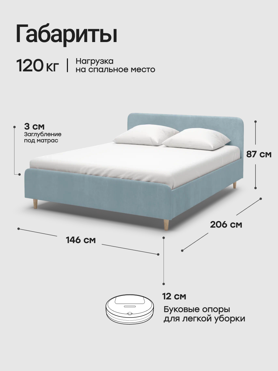 Кровать Hakkuna Matata, двуспальная, с подъемным механизмом, 160x200х75 см, голубая 32 000 ₽