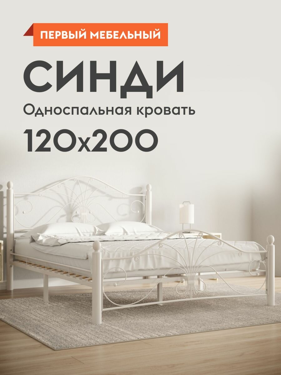 Отзывы на Кровать односпальная металлическая Синди 120х200 см, Кремово-белый металл