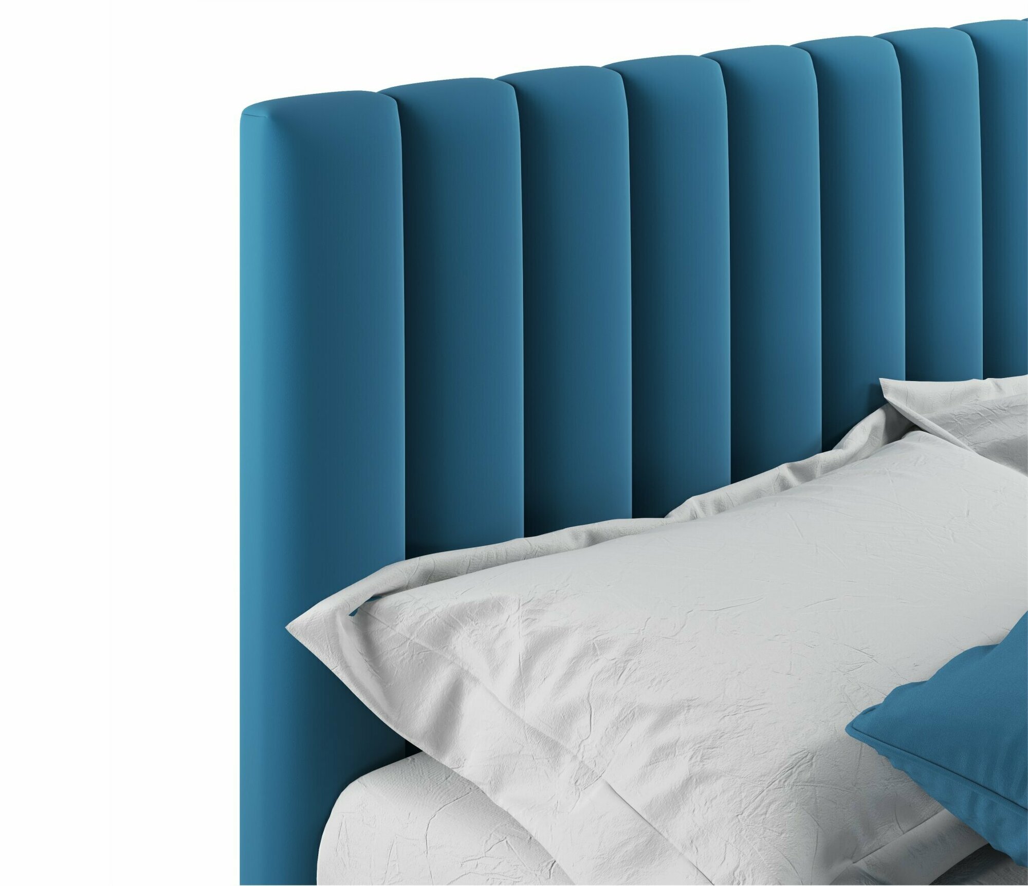 10 цен на Двуспальная кровать Olivia 1600 синяя Zeppelin с ортопедическим основанием, 160х200, мягкая из велюра, ламели