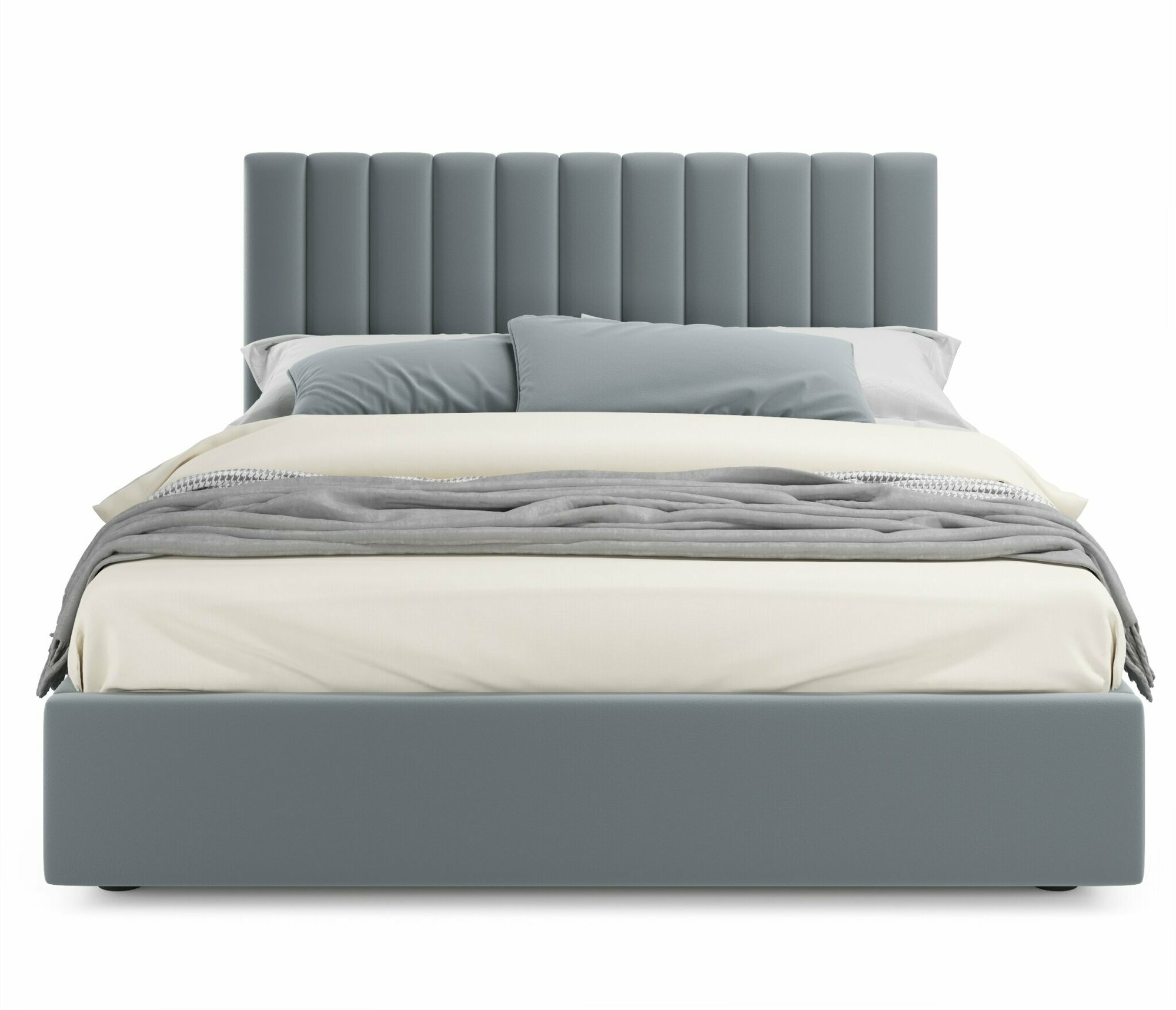 Двуспальная кровать Olivia 1600 серая Zeppelin с ортопедическим основанием, 160х200, мягкая из велюра, ламели информация: