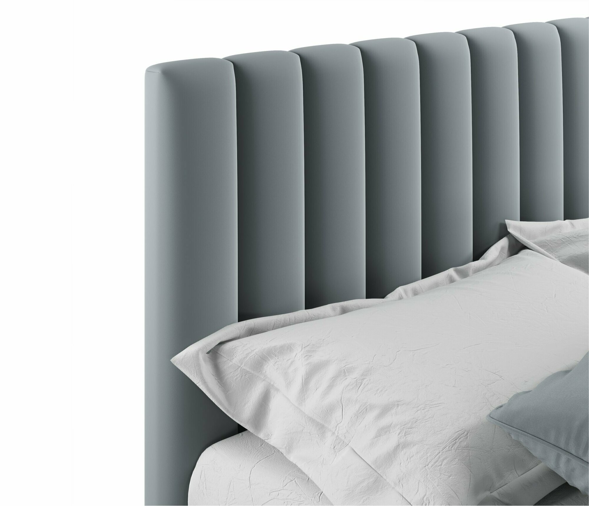 10 цен на Двуспальная кровать Olivia 1600 серая Zeppelin с ортопедическим основанием, 160х200, мягкая из велюра, ламели