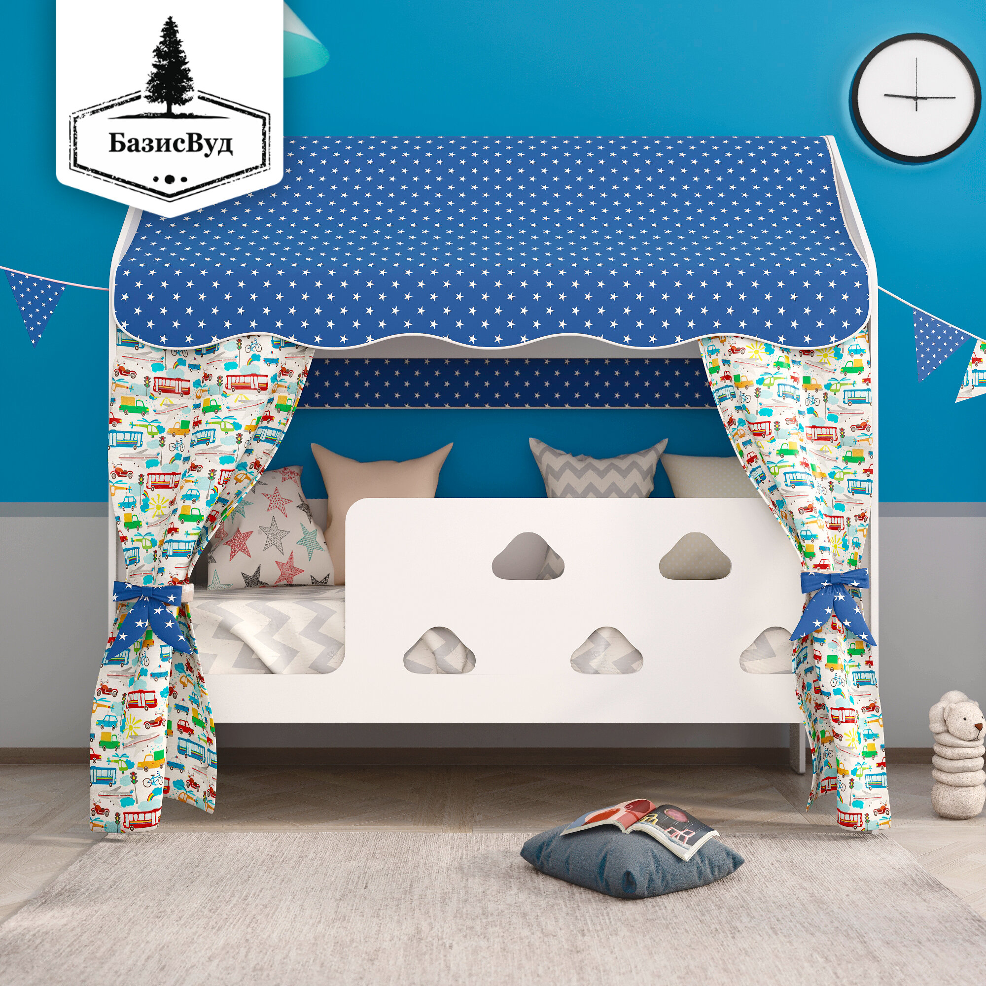 10 цен на Кровать детская домик с текстилем (синий, с машинками, вход слева) "Облачка"
