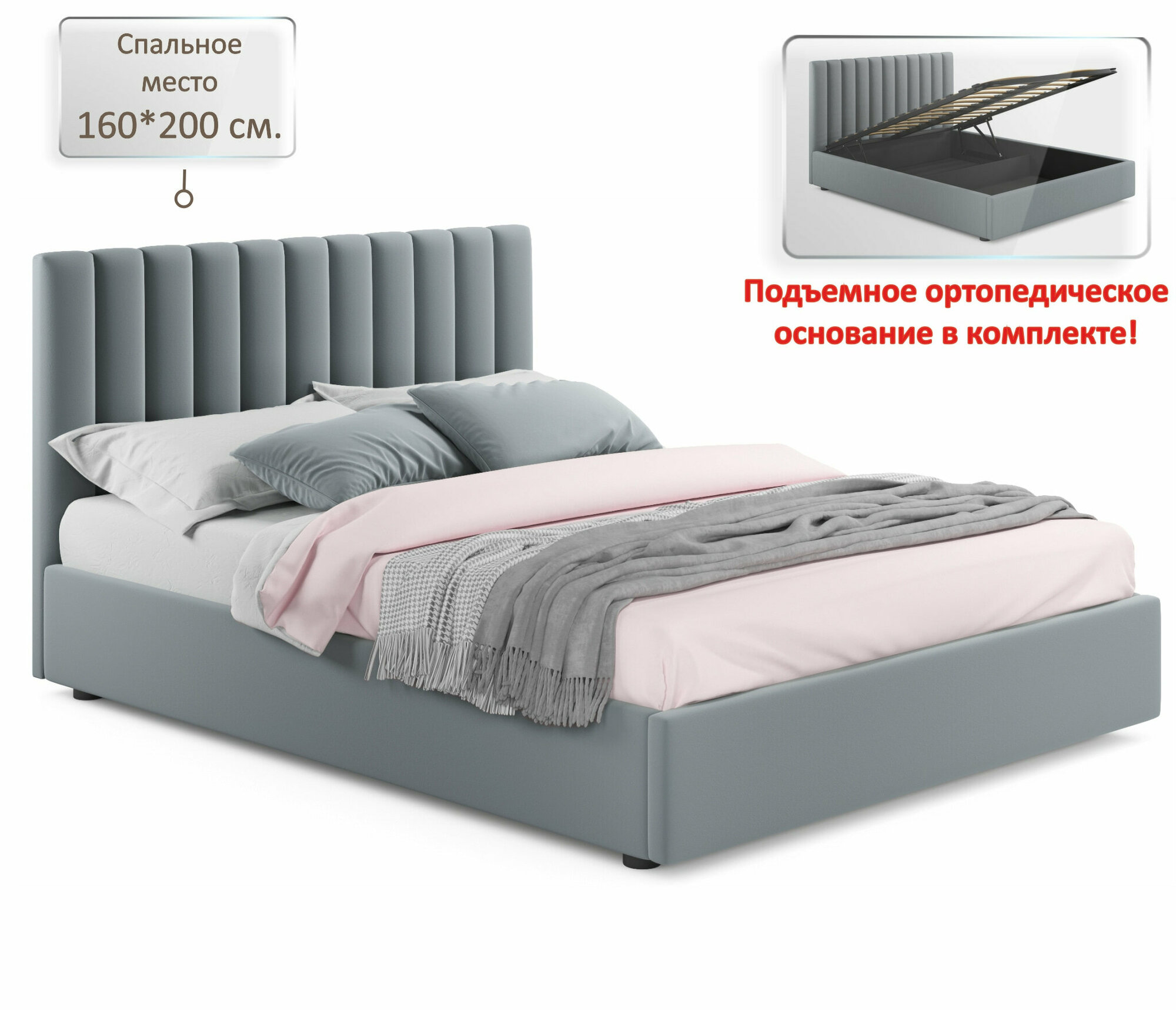 Мягкая кровать Olivia 1600 серая с подъемным механизмом информация: