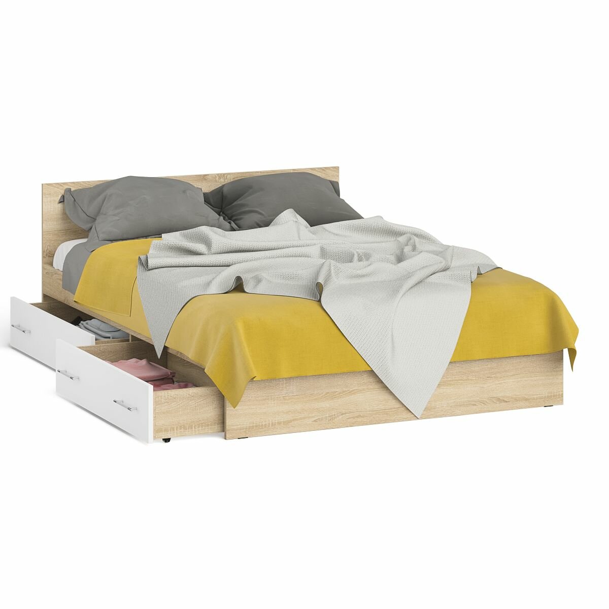 Отзывы на Кровать с ящиками Мори 1400 цвет дуб сонома/белый, ШхГхВ 143,5х203,5х70 см, сп. м. 1400х2000 мм, без матраса, основание есть