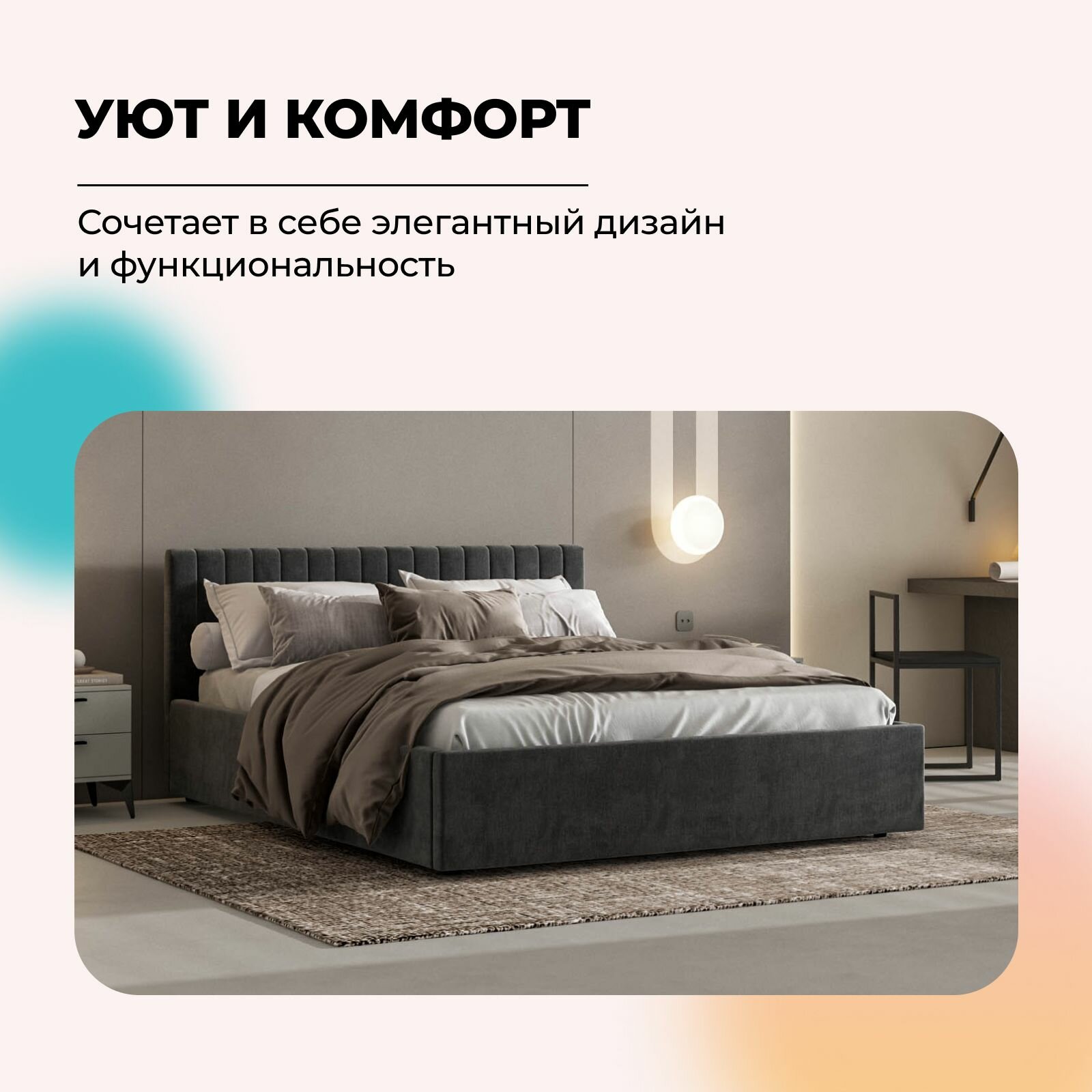 Двуспальная кровать Ронда с подъемным механизмом, велюр Monolit серый, 160х200 см информация: