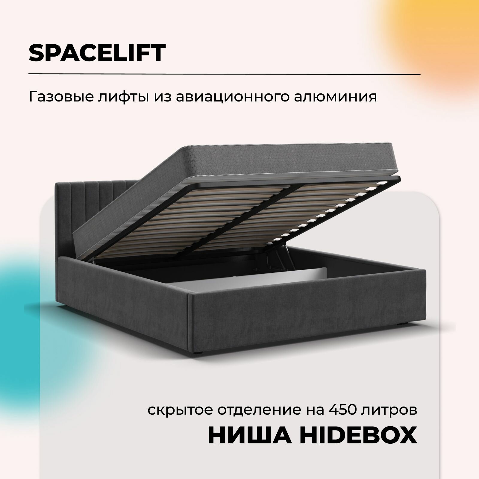 10 цен на Двуспальная кровать Ронда с подъемным механизмом, велюр Monolit серый, 160х200 см