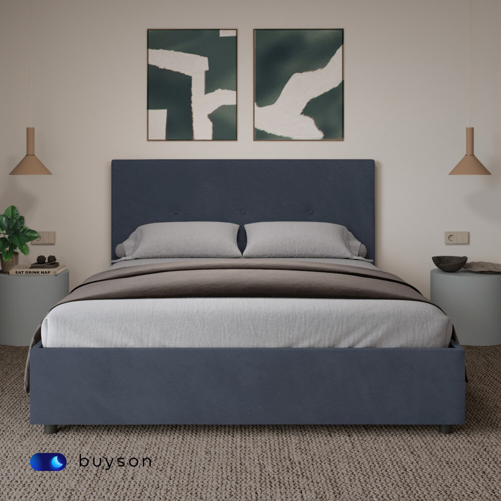 Отзывы на Двуспальная кровать buyson BuyRelax 200х160 с подъемным механизмом, серо-синий, микровелюр