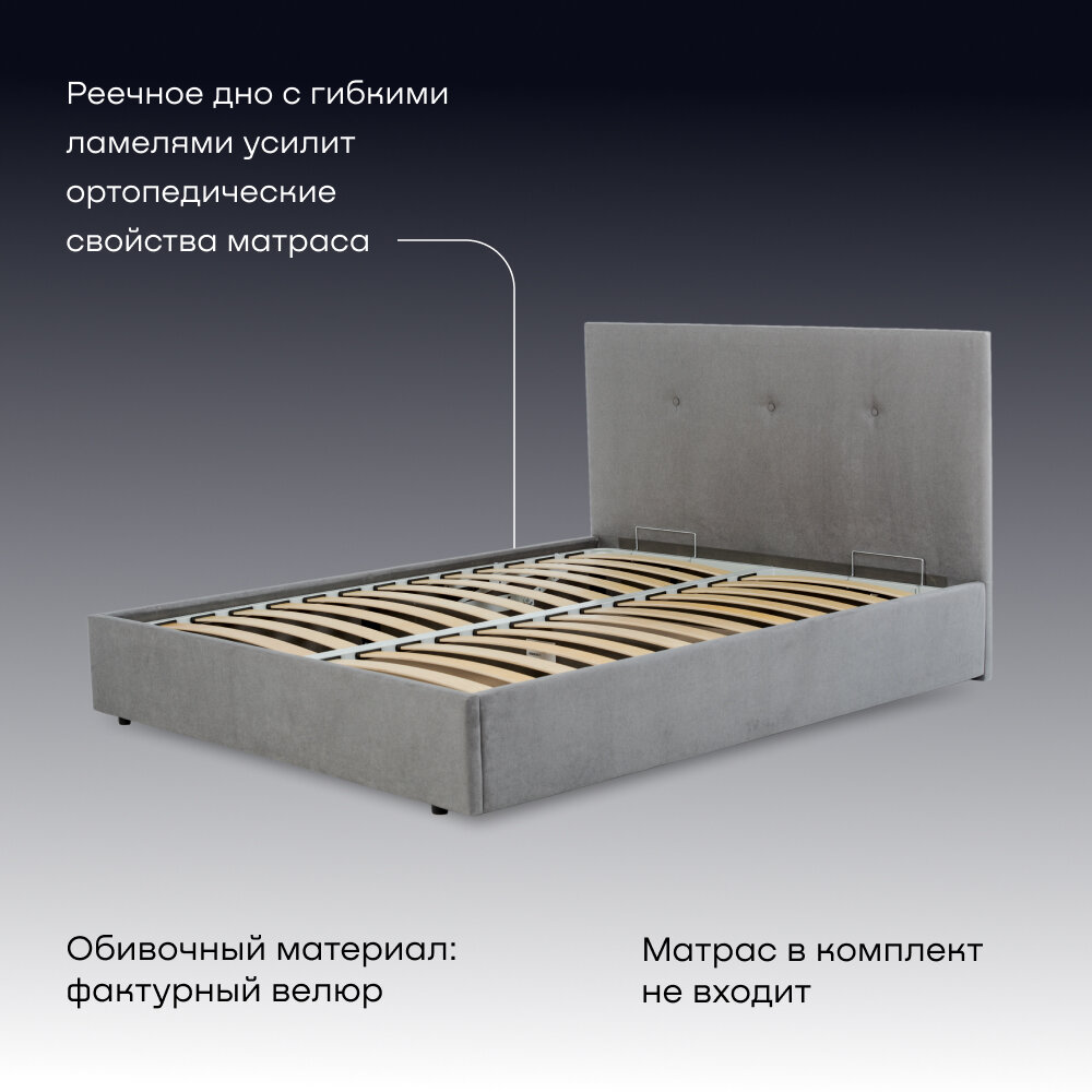 Двуспальная кровать buyson BuyRelax 200х140 с подъемным механизмом, микровелюр, серый информация: