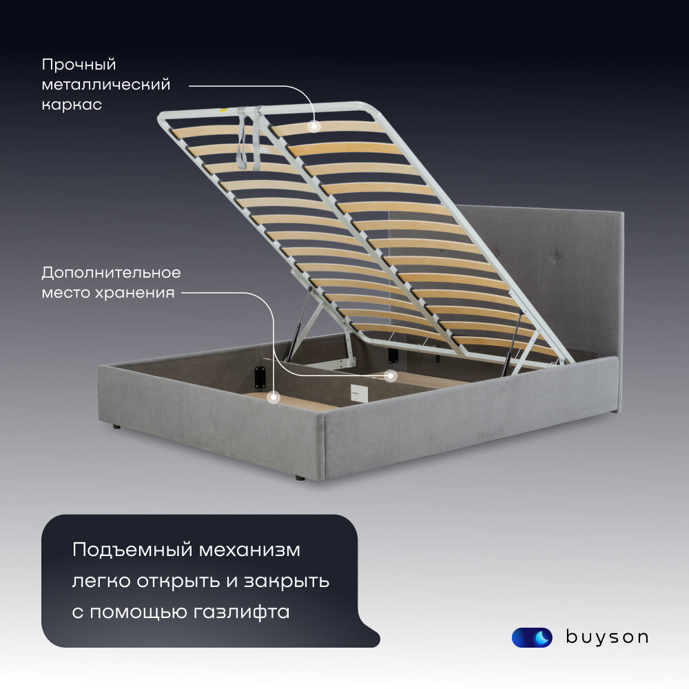 Отзывы на Двуспальная кровать buyson BuyRelax 200х140 с подъемным механизмом, микровелюр, серый