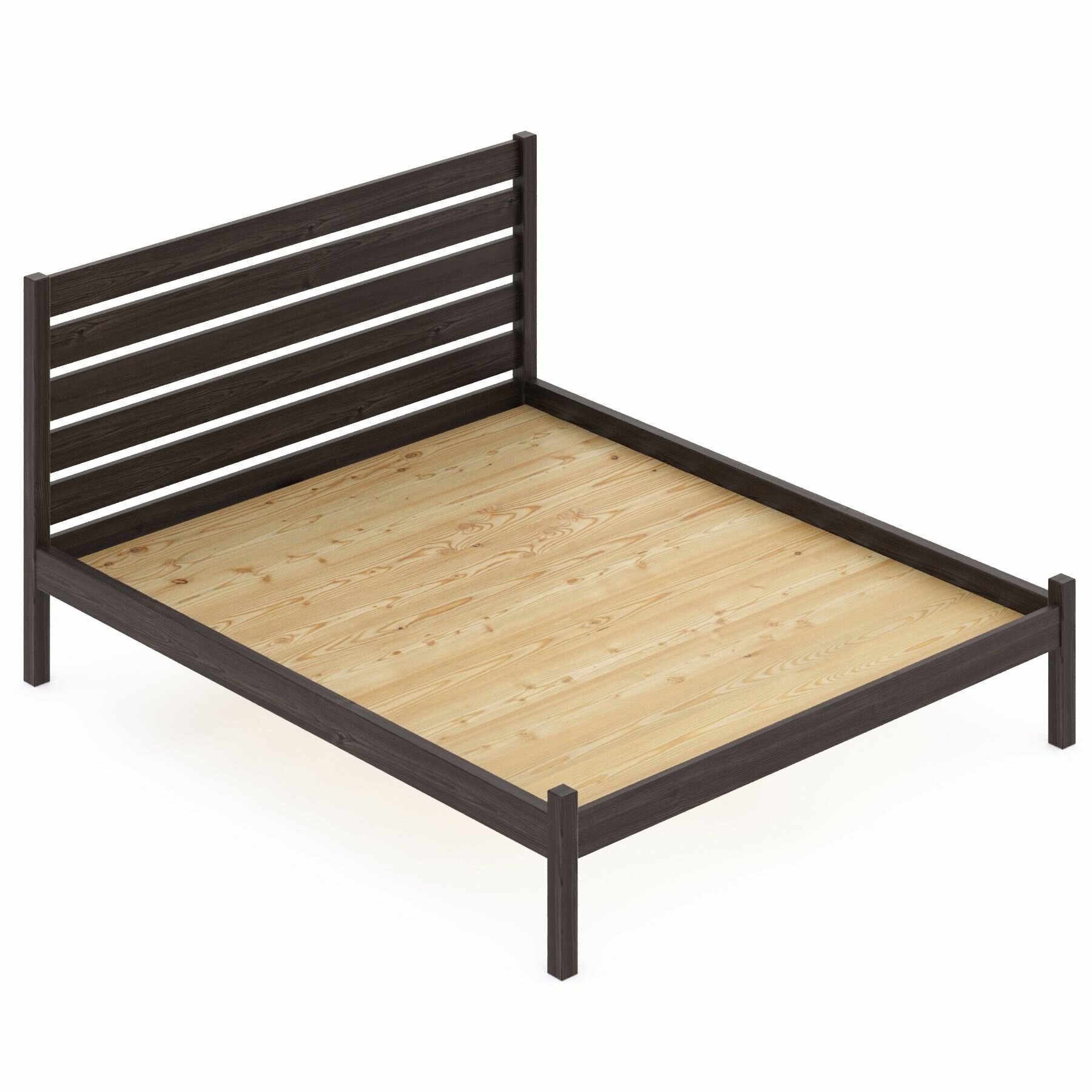 Кровать двуспальная Классика из массива сосны с высокой спинкой и сплошным основанием, 190х120 см (габариты 200х130), цвет венге 16 745 ₽