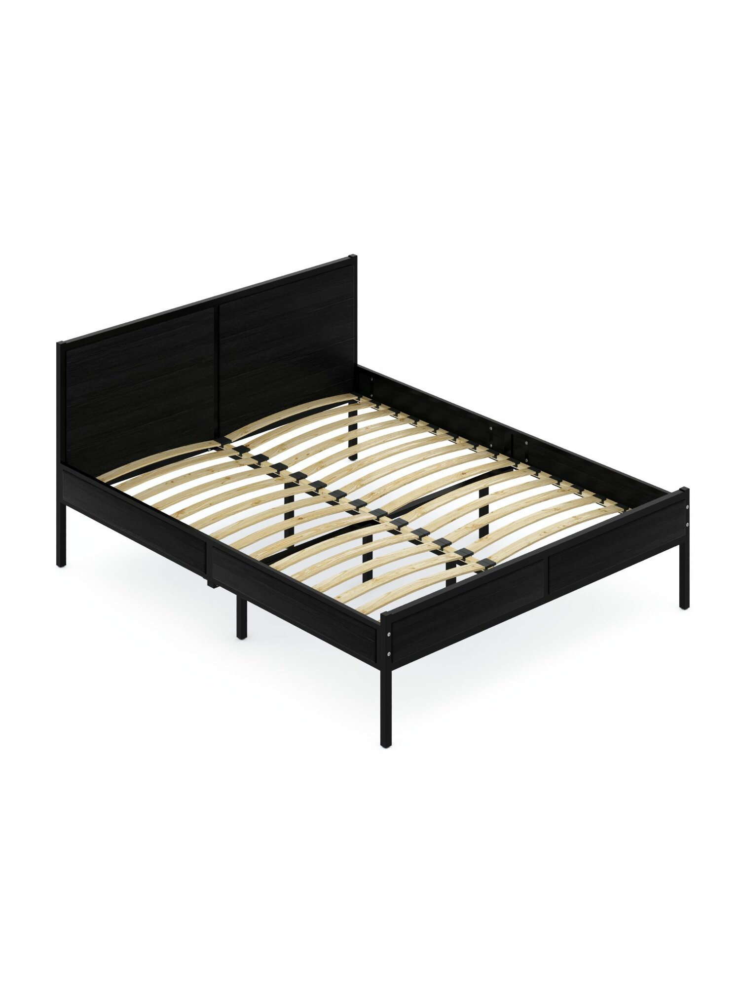 10 цен на Кровать двуспальная Лофт с ортопедическим основанием, цвет черного оникса с черным металлическим каркасом, 140х200 см
