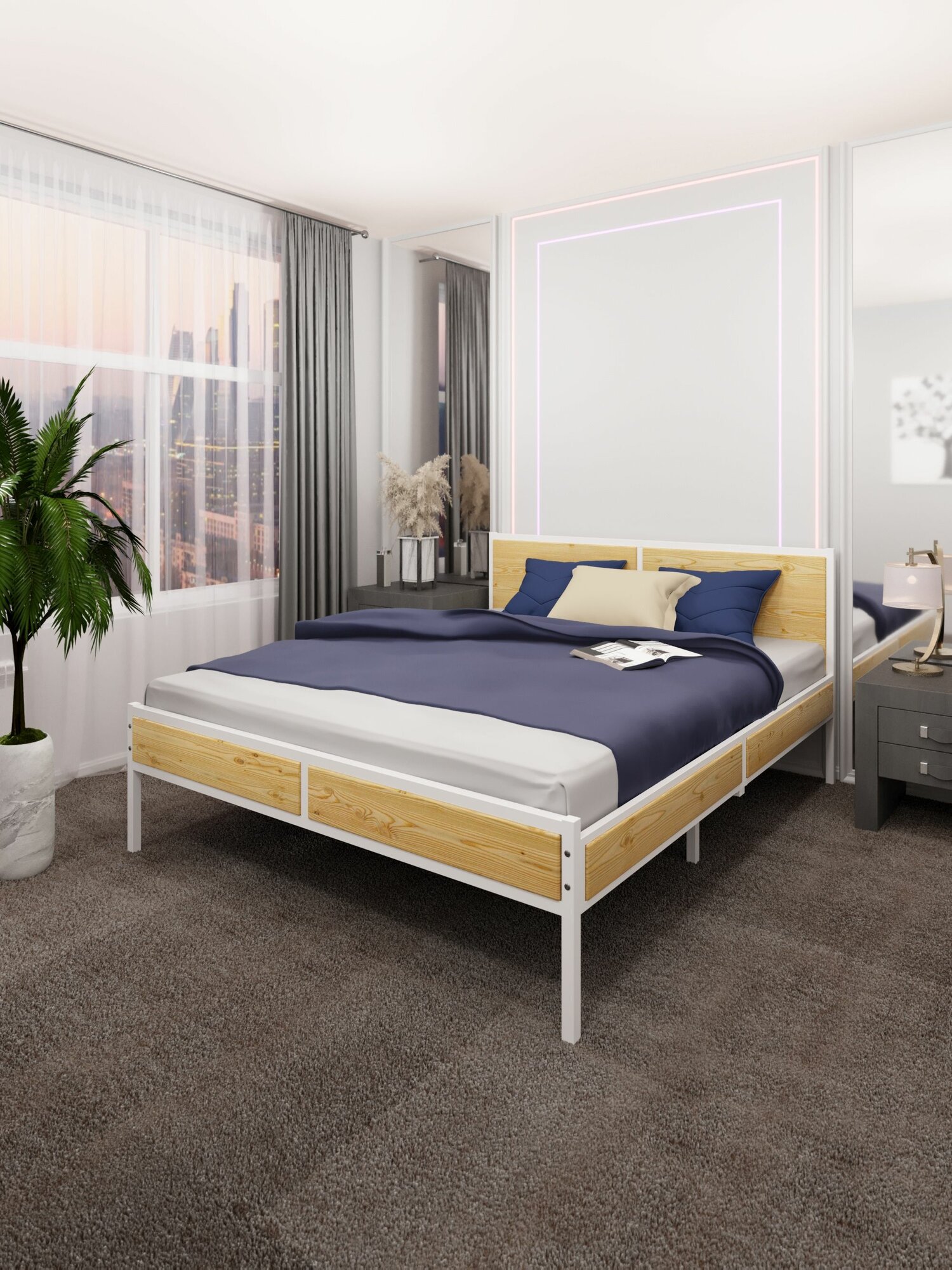 Кровать двуспальная Лофт с ортопедическим основанием, без покраски с белым металлическим каркасом, 160х200 см 21 299 ₽