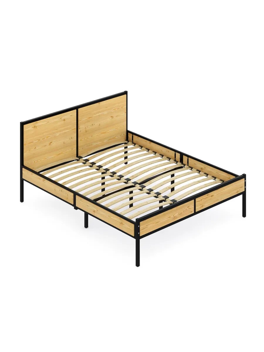 10 цен на Кровать двуспальная Лофт с ортопедическим основанием, без покраски с черным металлическим каркасом, 140х200 см