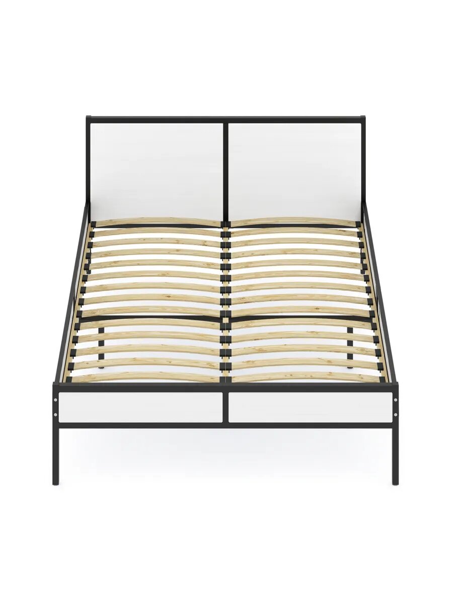 Кровать двуспальная Лофт с ортопедическим основанием, цвет белый с черным металлическим каркасом, 120х200 см информация: