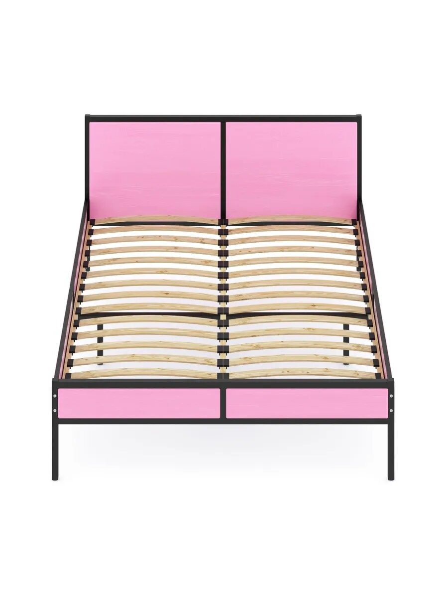 10 цен на Кровать двуспальная Лофт с ортопедическим основанием, цвет розовый с черным металлическим каркасом, 140х200 см