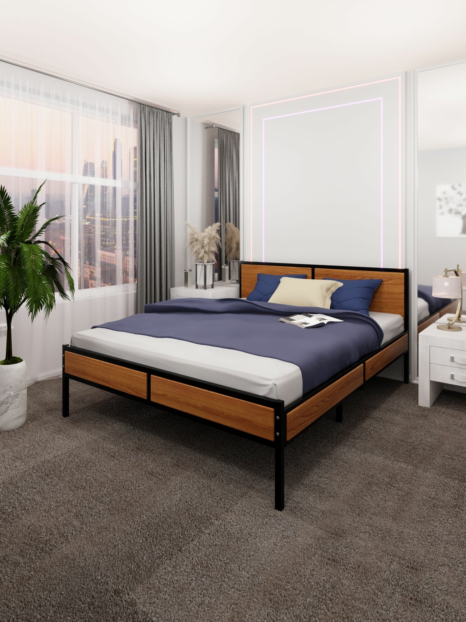 Кровать двуспальная Лофт с ортопедическим основанием, цвет венге с черным металлическим каркасом, 160х200 см 23 756 ₽