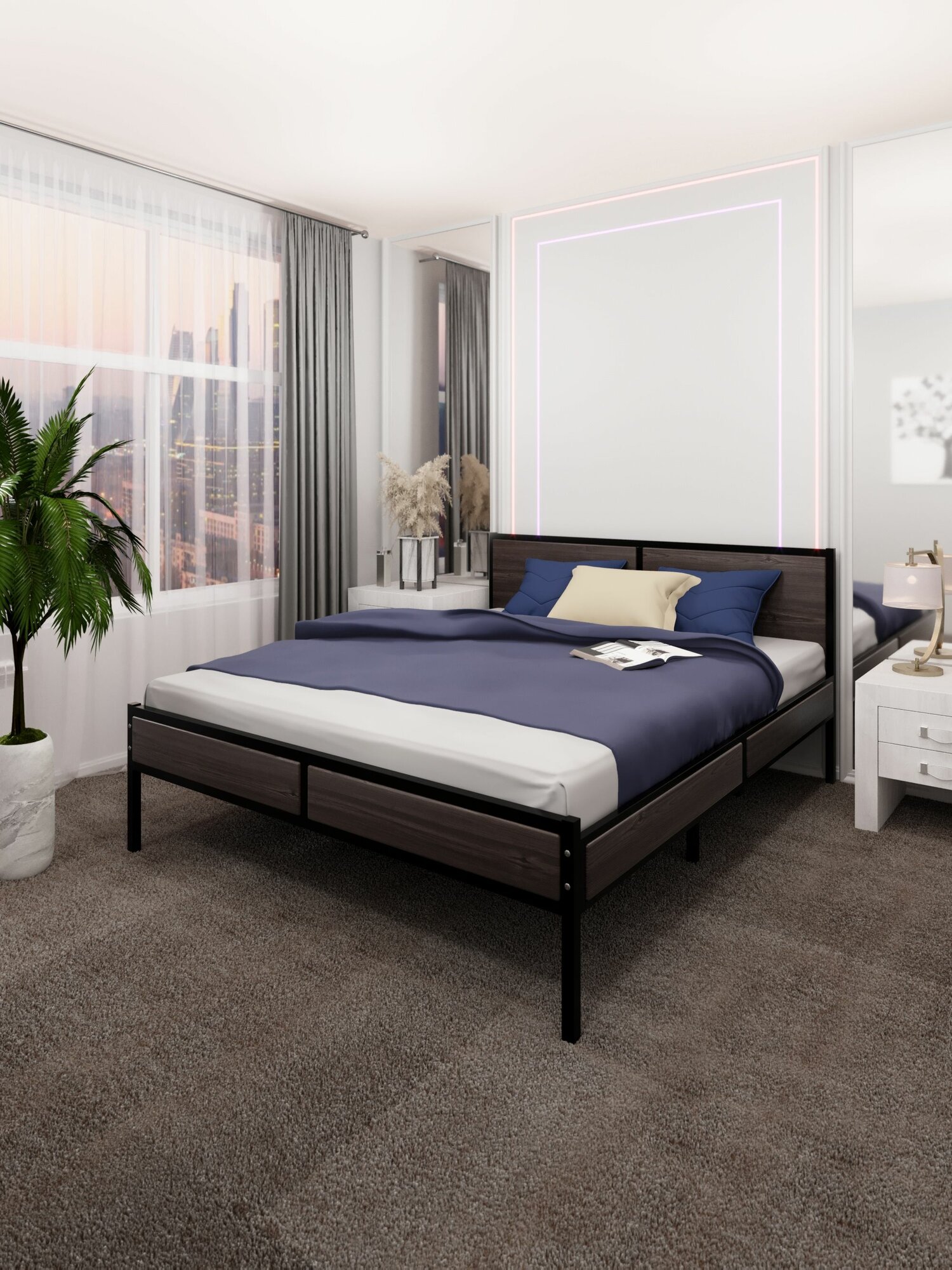 10 цен на Кровать двуспальная Лофт с ортопедическим основанием, цвет венге с черным металлическим каркасом, 160х200 см