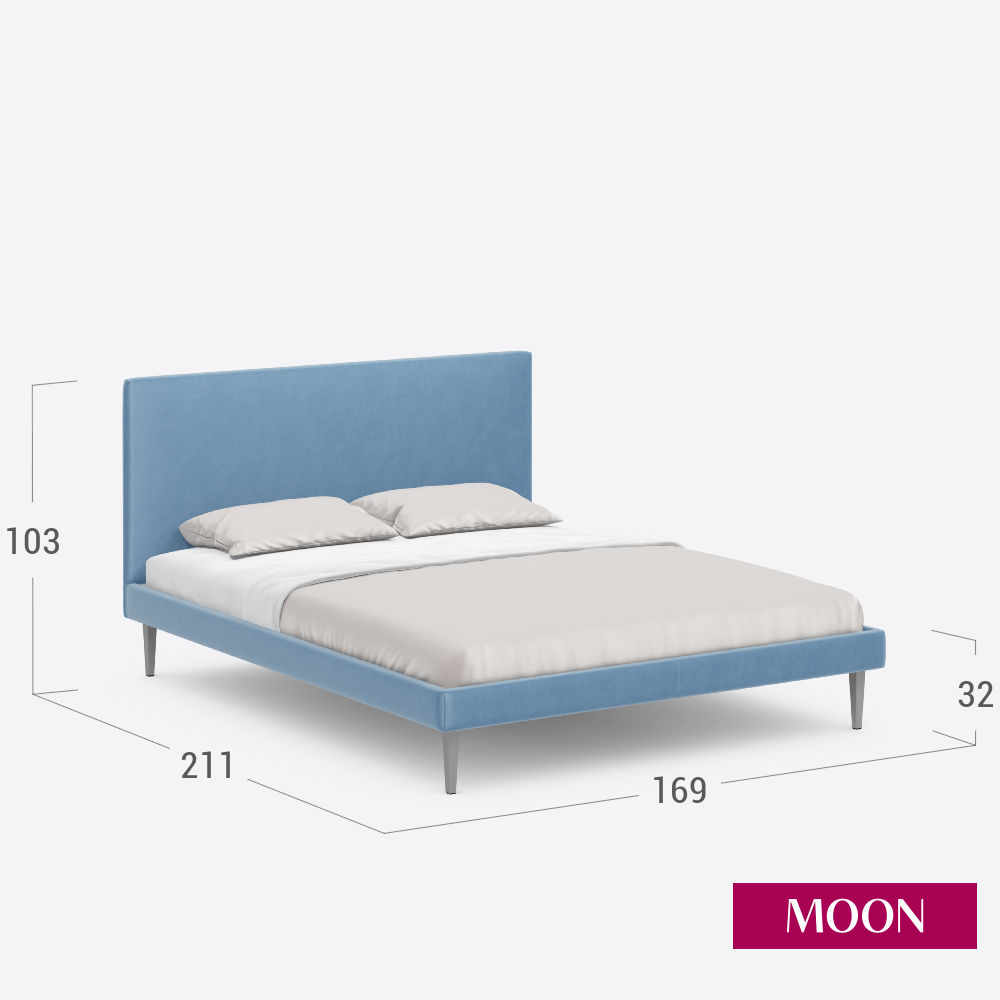 Кровать двуспальная без подъемного механизма на ножках, MOON FAMILY 1256, размер 160х200 см, велюр голубой. Ортопедическое основание в комплекте информация: