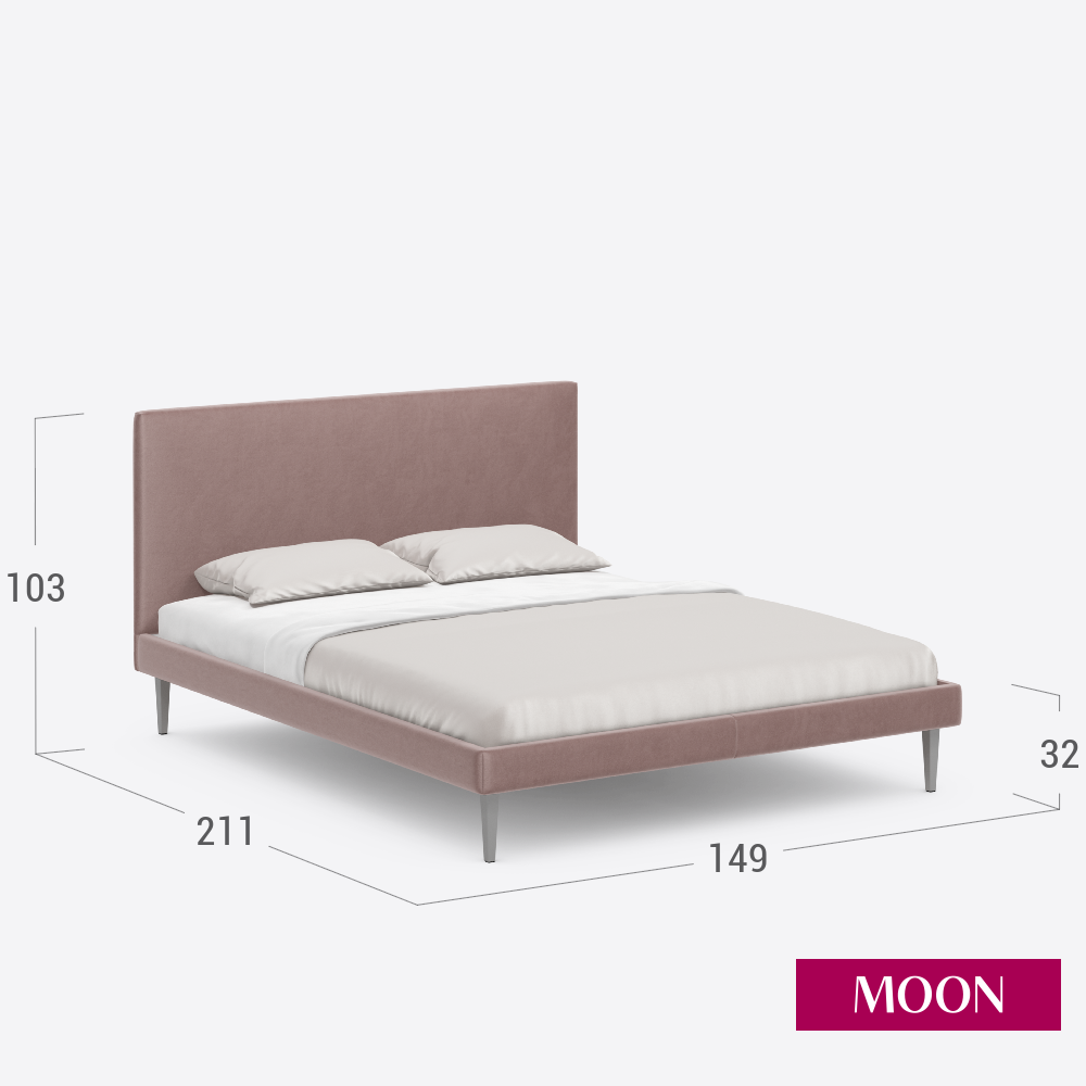 10 цен на Кровать двуспальная без подъемного механизма на ножках, MOON FAMILY 1256, размер 140х200 см, велюр розовый. Ортопедическое основание в комплекте