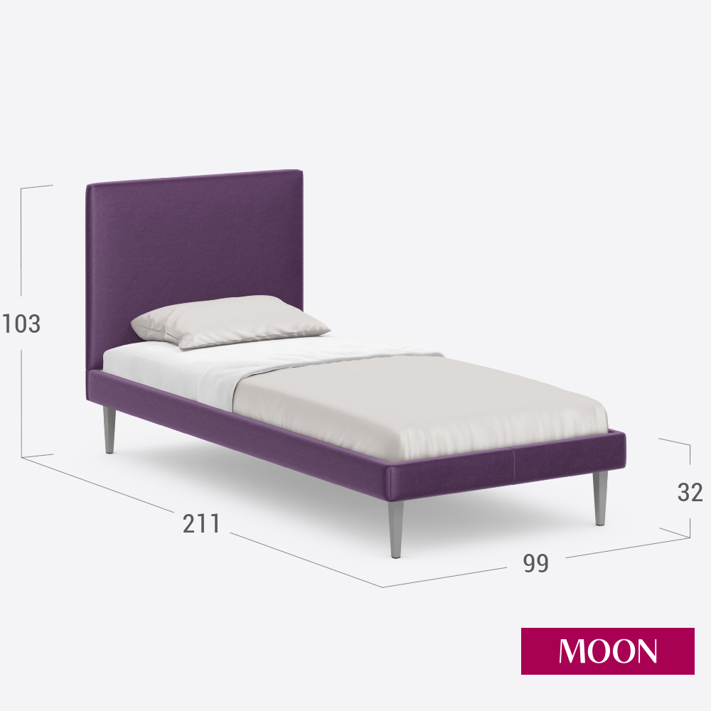 10 цен на Кровать односпальная без подъемного механизма на ножках, MOON FAMILY 1256, размер 90х200 см, велюр фиолетовый. Ортопедическое основание в комплекте
