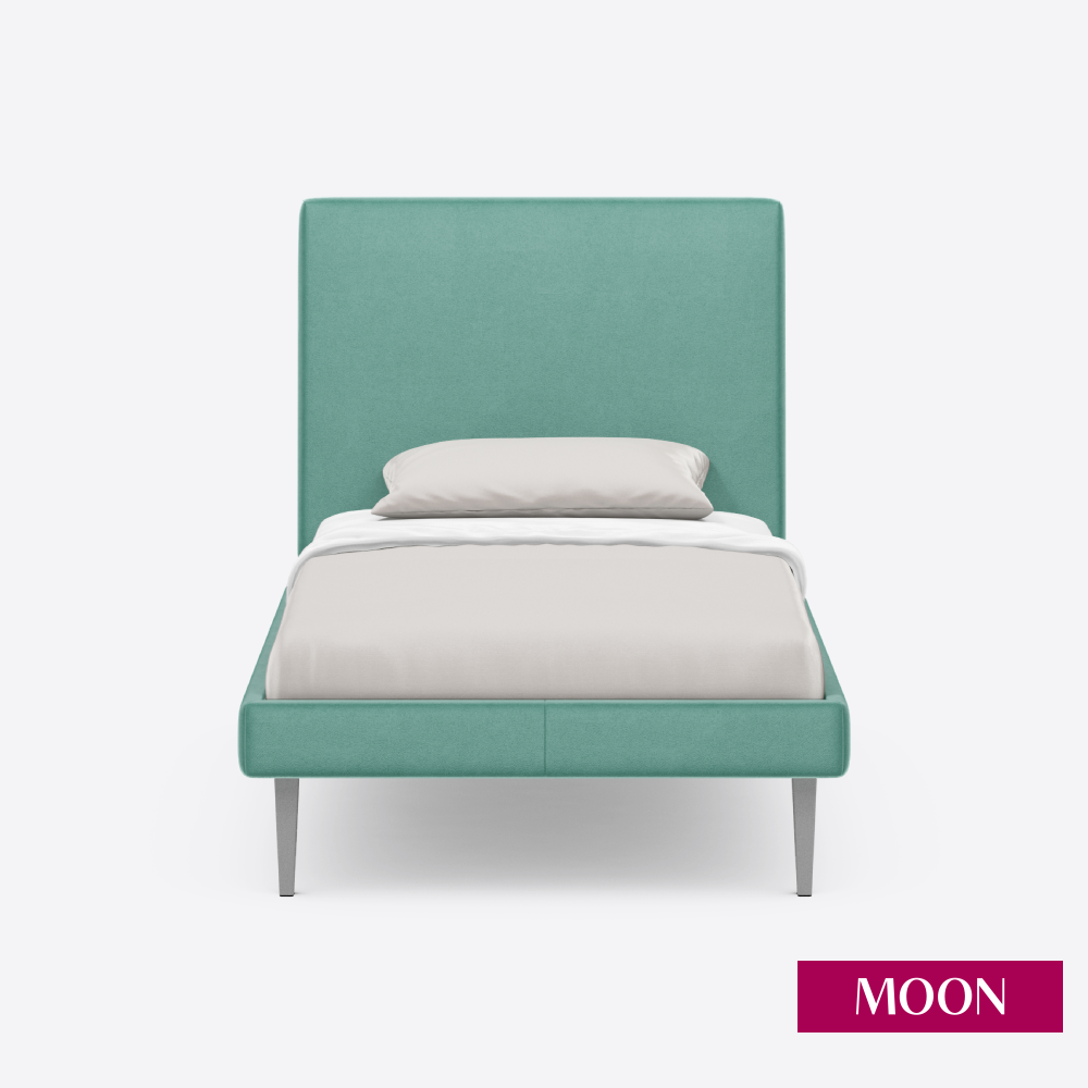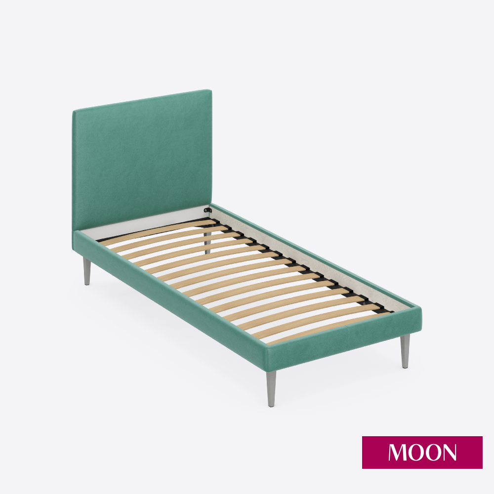 10 цен на Кровать односпальная без подъемного механизма на ножках, MOON FAMILY 1256, размер 90х200 см, велюр светло-зеленый. Ортопедическое основание в комплекте