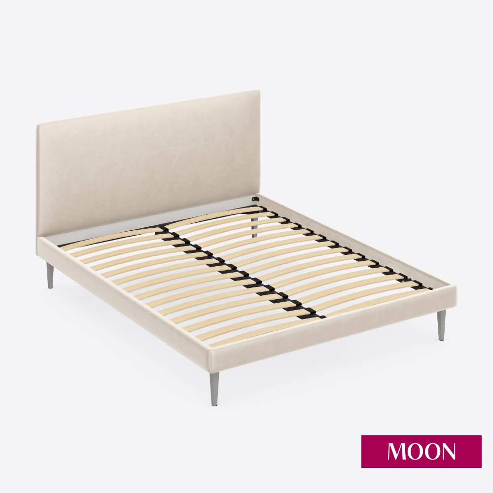 Кровать двуспальная без подъемного механизма на ножках, MOON FAMILY 1256, размер 140х200 см, велюр бежевый. Ортопедическое основание в комплекте 21 100 ₽