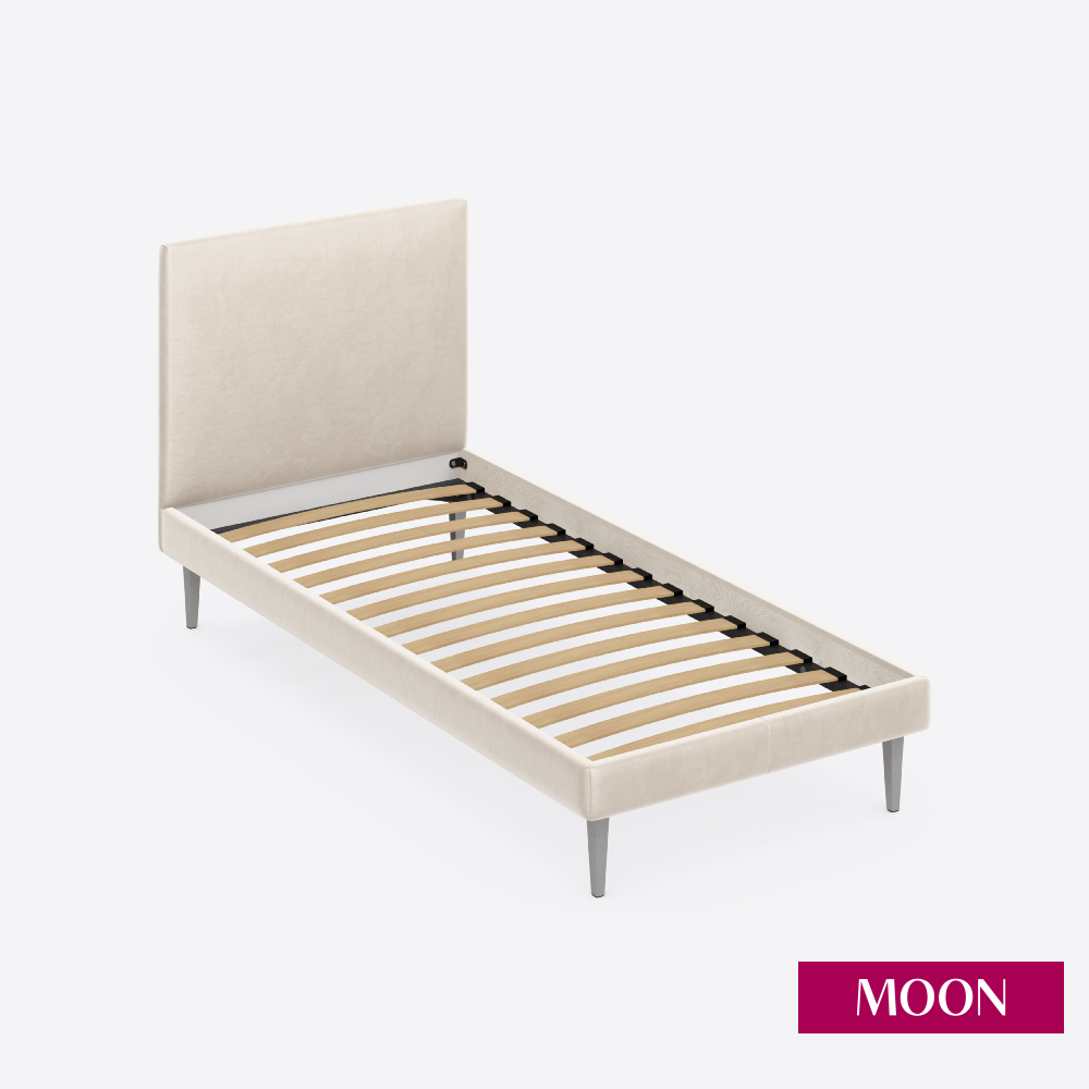 10 цен на Кровать односпальная без подъемного механизма на ножках, MOON FAMILY 1256, размер 90х200 см, велюр бежевый. Ортопедическое основание в комплекте
