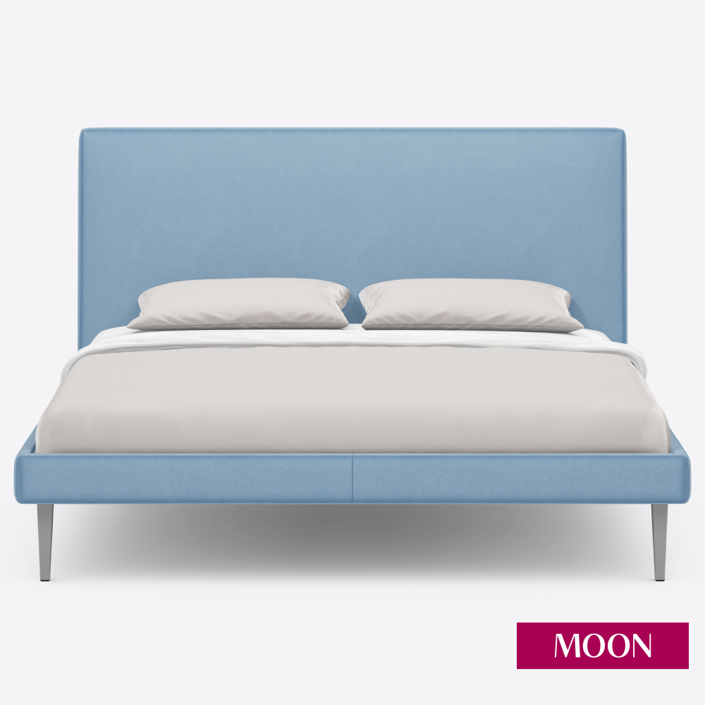 10 цен на Кровать двуспальная без подъемного механизма на ножках, MOON FAMILY 1256, размер 140х200 см, велюр голубой. Ортопедическое основание в комплекте